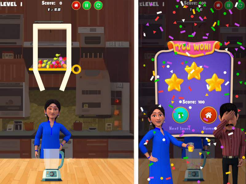The visual design features vibrant fruit-themed puzzles, dynamic animations, and intuitive user interfaces. The game's aesthetics are tailored to reflect the cheerful and caring personality of Anjali Mehta, enhancing the overall player experience.