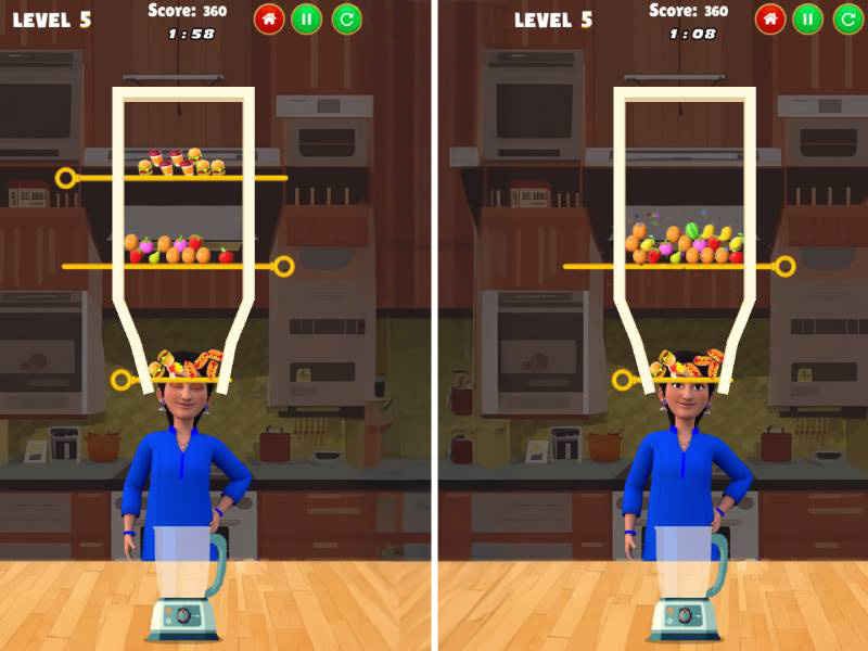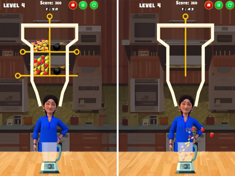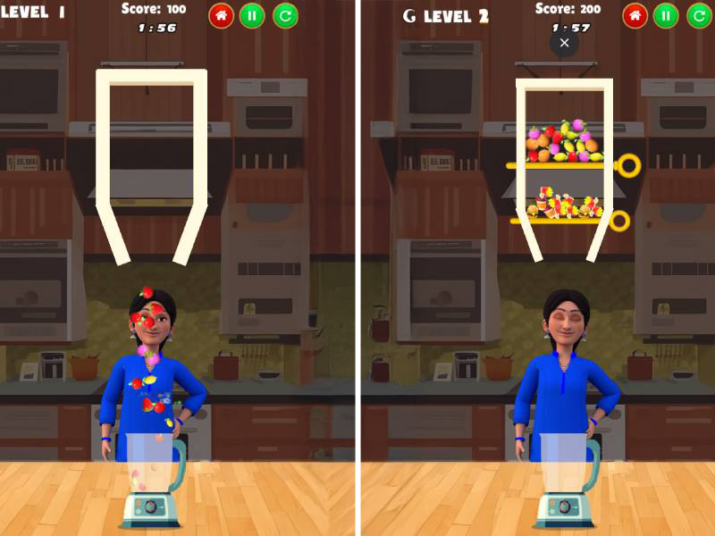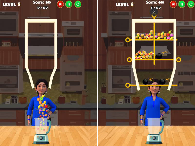 Anjali Fruit Merge is a captivating HTML5 puzzle game developed by TMKOC Play, inspired by the beloved character Anjali Mehta from Taarak Mehta Ka Ooltah Chashmah. Players are tasked with filling a bowl with fruit by strategically removing pins to create a path for the fruit to reach the container. Each level is completed when the bowl is filled or when no more food can be placed, offering a delightful blend of strategy and fun.